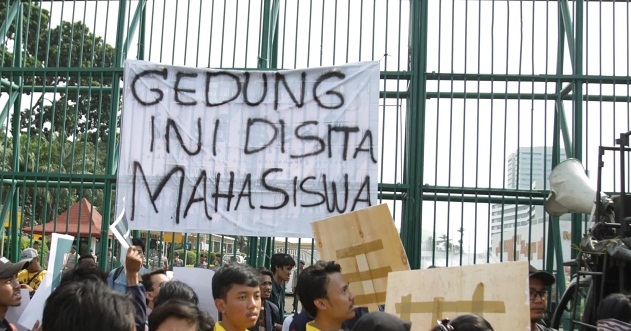 *Mahasiswa* => “Ya hny dorong2 pagar sampai roboh, lempar2 batu sdkt & bakar2 ban dijalan Pak...”